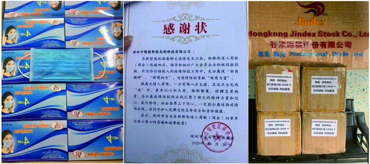 開年以來,錦德公司積極配合政府工作,積極響應政府號令,深圳市錦德智能高新科技有限公司以柔性材料切割提供完整解決方案的產品研發(fā)及銷售,公司總經理劉明軍先生表示:這個新型冠狀病毒肺炎出現的時候,我第一時間想到是我們應該為社會做些事情。由于現在是在特殊時期,國內口罩貨源緊張,立刻聯系國際友人,從國外緊急采購近萬個越南進口醫(yī)用口罩,援助給新橋商會及新橋街道辦,為新橋街道的疫情防控工作助力,以實際行動踐行企業(yè)家的社會責任與擔當,盡微薄之力!