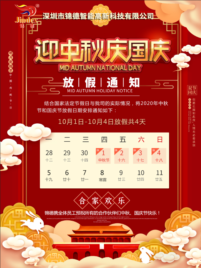由于中秋國(guó)慶雙節(jié)假日即將來(lái)臨,為保證大家正常合作及運(yùn)營(yíng),現(xiàn)特將我公司放假事宜公布如下: